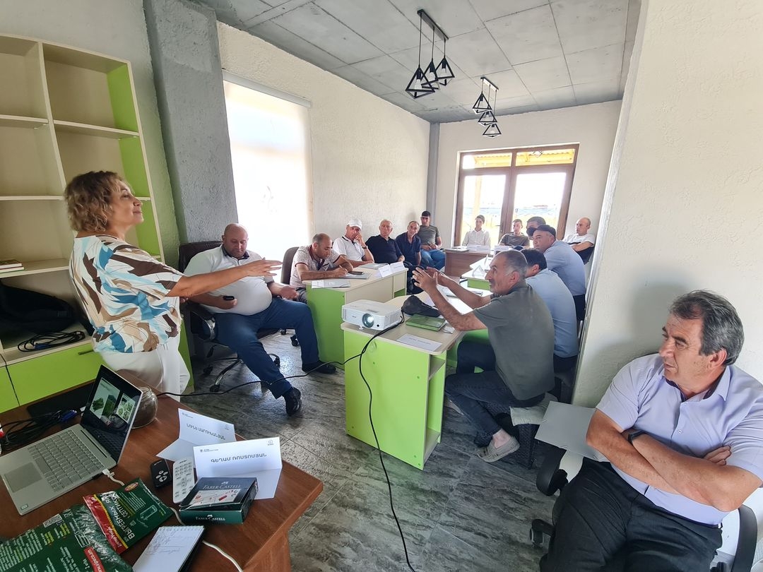 With the support of ACBA Federation, training courses were organized by the Green Lane NGO at the Green Training Center for the ACBA bank client farmers from Shirak Province. During two intensive days, farmers from each group were introduced to the sustainable cultivation of high-value crops, as well as the application of organic and safe pest control technologies. The trainer presented detailed and effective techniques covering the full crop cycle—from soil preparation and sowing care to crop management, harvesting, and post-harvest processing.